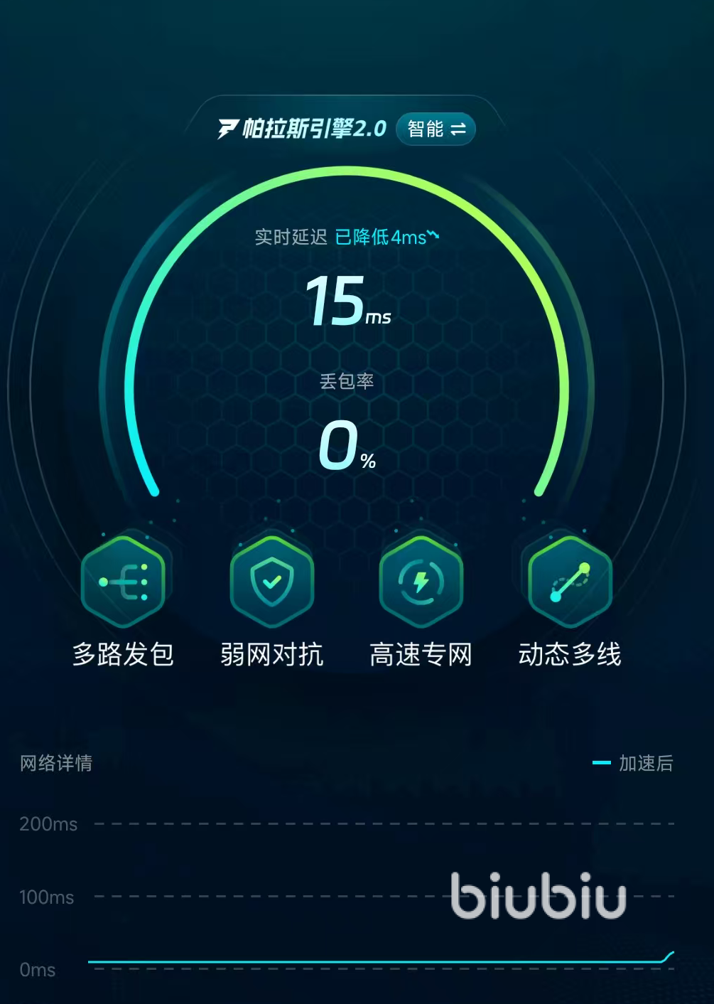 如果玩家们的配置和内存方面都几乎没有任何问题,那么大概率是网络问题引起的闪退,这类闪退尤其是在中途对战的时候频繁,一旦闪退很容易给队友造成麻烦,那么这时候就可以使用biubiu进行加速,而且现在的biubiu对于手机游戏都是免费的,加速性能还是较为出色的。