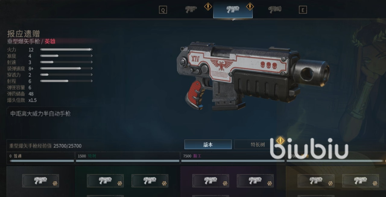 报应遗赠(重型爆矢手枪),适用于远程击杀高级敌人后获得伤害增益;