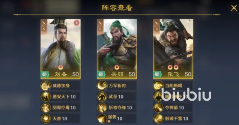 在阵容构建方面,最常见的搭配为“桃园枪”组合,即由刘备、关羽与张飞共同出战。此阵容以叠加重伤效果为核心战术,当敌方累积达到3层重伤后,其输出能力将受到明显压制。此外,三人激活“桃园结义”羁绊,可在战斗开局提供额外减伤效果,无论用于打地还是前期开荒,表现均十分出色。
