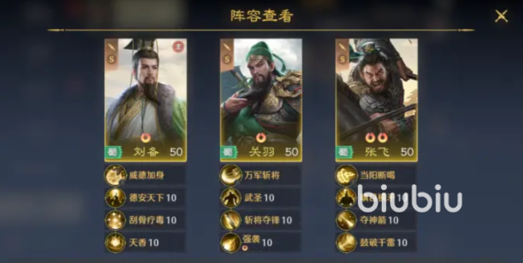 此外,其自带技能“德安天下”在遭受普攻时有20%概率触发治疗效果,若攻击者处于虚弱状态,则触发几率提升至30%。搭配关羽、张飞组成蜀国核心阵容,可实现稳定的前排承伤与团队续航。