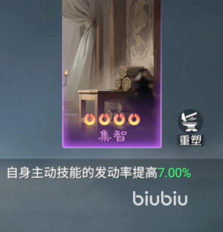 “集智”是另一张具有战略价值的紫色技能卡。当武将成功释放主动技能时,该技能可使其后续额外效果的触发概率提升7%。虽然看似增幅不大,但在高基础触发率的前提下,这种叠加收益尤为明显,特别适配那些依赖主动技连发机制的核心输出或控制型武将,进一步放大其战场影响力。