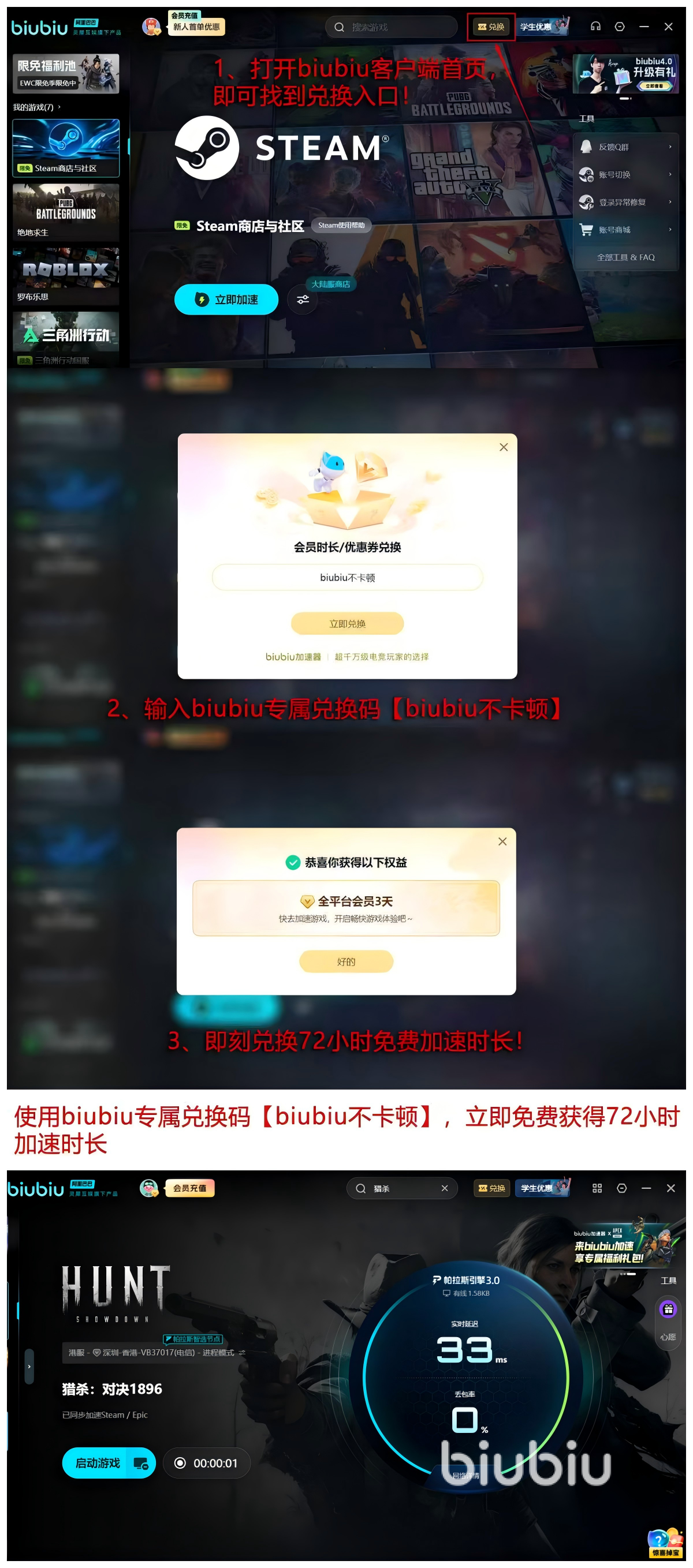 【biubiu不卡顿】暗号能获取72小时的时间,再加上新用户的24小时,总计96小时能让各位玩家收获不一样的加速体验。对于想要免费加速的玩家来说可以说是非常好的一项内容,没有体验过游戏的玩家也能够在自如的游玩加速器,感受一下有加速器存在的网络下,高速运行这款游戏进行线上战斗的快乐,对于多数玩家来说都是超值的活动,绝对做到先体验再购买,不会导致各位不清楚适不适合盲目购买会员,产生后悔情绪的情况。
