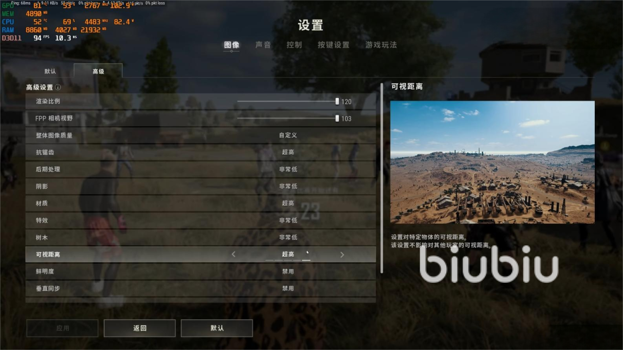最简单的方法是进入设置的高级选项内,垂直同步这个功能基本上一定是必须要禁用的,不然玩家无论怎么操作都是一定会有点卡的,鲜明度也是可以禁用,渲染比例达到最高,FPP相机视野可以达到最高点,如果自己的电脑的配置实力不够可以将整体的画面质量降到最低点,能够因此显著提升帧数,当然许多玩家会选择直接升级GPU的配置,这也是降低帧数影响的最佳方法,同时可以打开BIUBIU选择n卡或者a卡的更新加速,用来显著减少帧数的影响。