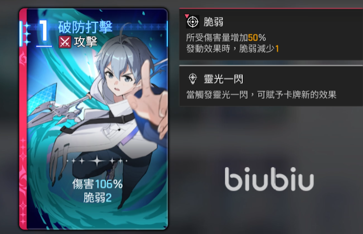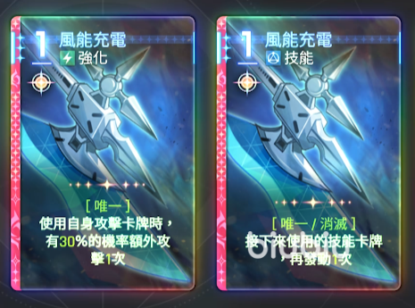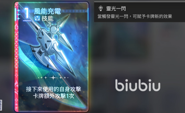 卡组构建优先级明确:主力输出卡首选“破防打击”,其次为“正式成为王的理由”(二费群体攻击,基础系数高于同费档位其他角色,且单段伤害利于衔接“风能充电+闪锋”打出快速AOE);“疾风1击”作为备选,虽具伤盾效果,但牌效偏低,仅在资源枯竭时启用。“风能充电”本身并非核心输出手段,而是功能性启动组件,服务于后续高伤卡的稳定释放。
