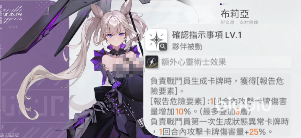 伙伴选择需紧密围绕“虚无”机制展开,优先级分为两类:首选布莉亚,其专属被动为“每生成1张卡牌,叠加1层独立攻击力加成”,该增伤不与其他常规增伤乘区冲突,叠加效率远超同类效果;且生成异常状态卡时,额外触发一次增伤,与凯隆高频产“虚无”的特性高度契合。