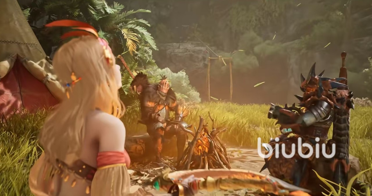 角色与怪物建模精度达到行业领先水平。主角、随行伙伴及各类狩猎目标均采用多边形面数优化后的高精度模型,服饰纹理清晰可辨,经典装备如火龙系列铠甲的鳞片结构、金属反光质感均得到忠实还原。战斗特效设计强调真实反馈而非堆砌光效,不同武器挥砍轨迹、击打反馈、受创反应均具备差异化物理逻辑,确保动作观感扎实可信。探索系统亦融入大量交互元素:野外可搭建临时营地、使用滑索快速穿行、操作鼓风机改变局部气流、砍伐树木采集资源等,这些机制不仅拓展玩法维度,也从侧面印证了项目在内容打磨上的完成度。
