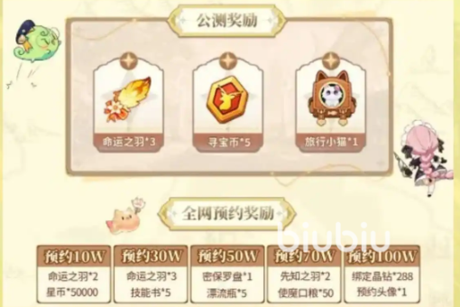 全网预约奖励也已全面解锁。预约人数达10万时,全体玩家可获得2个命运之羽;突破30万则额外赠送3个命运之羽和5本技能书;达到50万将解锁秘宝罗盘×1与漂流瓶×5;若总预约量达到70万,还将额外送出2个先知之羽和50份口粮。这些阶段性奖励充分体现了官方的诚意,每位参与的玩家都能轻松领取对应福利。