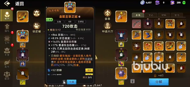 首先从武器选择入手,战神神力弓是弓箭流的核心装备,无需考虑其他替代品。该武器提供190%的群体伤害加成,并支持连射和蓄力两种攻击模式。开启连射时可触发388%的攻击效果,实现高效清场;而在蓄力状态下,伤害提升至188%,适合应对高血量目标。装备搭配应围绕攻击、移速与生存三大属性展开,确保每一部件都能强化刻印的实际收益。鞋子推荐使用道神靴,提供1000点攻击力和28%基础移速加成。更重要的是其刻印特性——击杀金甲单位后,移动速度额外提升33%,且暴击伤害会基于移速加成的30%获得额外增益。