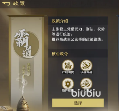 在九牧之野中,政策体系主要分为三大流派:霸道、王道与衡道。这三条路线各具特色,适用于不同类型的玩家。偏好高强度对抗的用户可优先考虑霸道路线,该体系能在战斗中提供显著加成,并通过短期高效指令快速获取资源,实现战力飞跃。而衡道则偏向支援与协作,适合热衷团队配合的玩家,能够提升盟友的资源产出与作战能力。