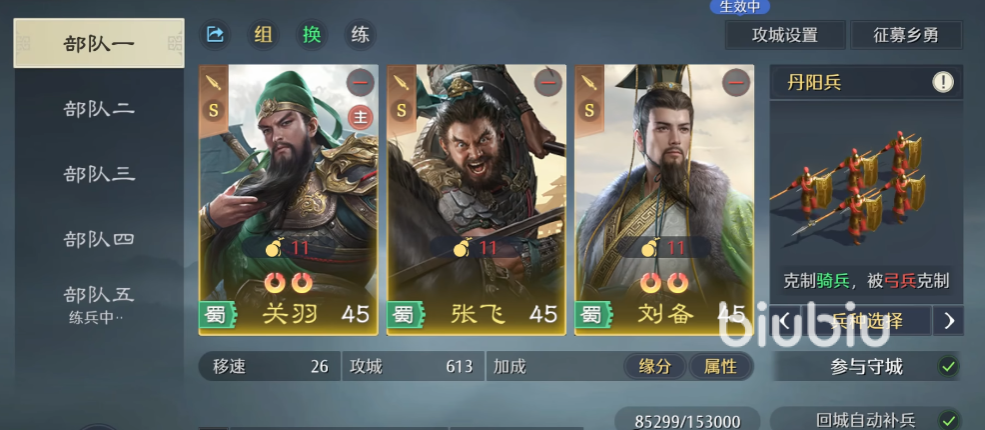阵容配置采用“1主2副”结构。主将承担核心输出或控制职能,副将负责补足属性短板。武将经验可通过日常讨伐流寇获取,单次行动最高获得1200经验。当需要更换主力时,启用“无损传承”功能:将已培养武将的全部等级、技能、兵法配置完整迁移至同类型新武将(如统帅型→统帅型),传承过程不损失任何培养资源。该机制特别适用于紫将向橙将过渡阶段,可节省约65%的养成成本。