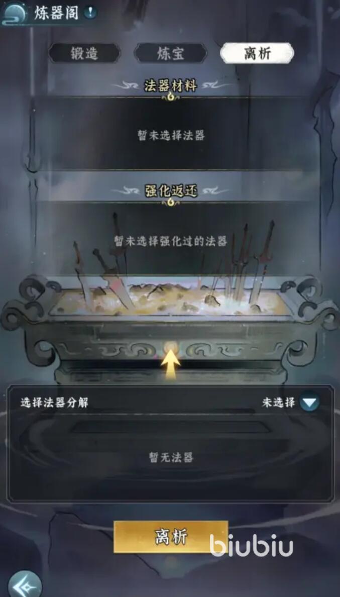 炼器阁另一不可忽视的实用模块为法器分解系统。当玩家持有低阶或重复法器时,可在此处执行分解操作,按固定比例返还强化类基础材料。此举不仅释放背包空间,更形成资源循环闭环,是中后期材料管理的重要手段。