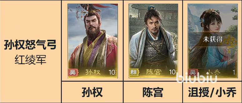 第二套推荐阵容为“孙权怒气流”弓兵组合,主将仍为孙权,搭配陈宫与沮授,亦可选用小乔作为辅助。孙权的怒气技能堪称全游戏最强之一,基础谋略伤害系数高达2500,并附带驱散己方负面状态的效果,实战中极具统治力。当孙权达到五红等级后,主将伤害额外提升30%,且在命中三个及以上目标时,自身怒气增加100点,实现快速循环释放大招。此时若配合满红小乔,后者可在战斗开始时为孙权提供100点初始怒气,使得孙权仅需再积攒50点即可再次施放技能,极大缩短输出间隔。尽管此阵容造价高昂,预计投入需达20万以上,属于氪金玩家首选,但普通玩家即便未满红,只要拥有孙权仍可发挥较强战斗力。