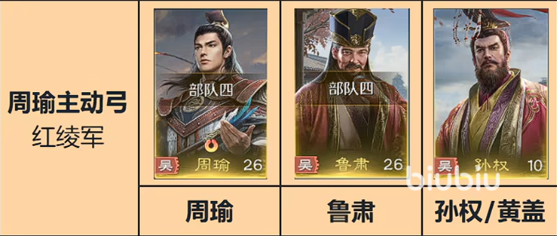 首推阵容为周瑜为主导的主动输出弓兵队。该阵容通常由周瑜、鲁肃与孙权组成。周瑜的核心机制在于释放主动技能时,能对敌方全体造成高额谋略伤害并附加燃烧状态,持续削弱对手血线。鲁肃则具备高概率触发的主动技能,不仅能提升主将的谋略伤害,还能通过增加统帅与智力属性进一步放大周瑜的输出能力。而孙权在此体系中的作用极为关键——其被动技能可使全队统帅、武力与智力各提升50点,形成全面增益。即便孙权获取难度较高,也可用黄盖替代,但此时需转为盾兵阵容。黄盖虽不具备孙权的团队加成,但其技能拥有400系数的武力伤害,在单体爆发方面表现不俗,因此在缺乏孙权的情况下仍是可靠选择。