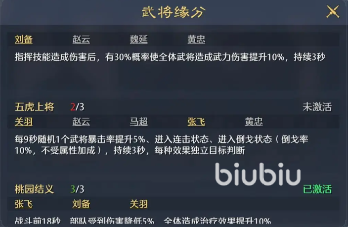 值得一提的是,关羽在枪兵阵营中可激活【武圣】状态,额外获得10%发动率提升,显著增强技能释放稳定性。配合整体重伤覆盖率,队伍输出节奏更趋平稳,并附带一定控场能力。刘备的治疗职能与关羽、张飞的持续压制形成闭环,而骑兵对重伤目标的15%伤害加成亦可与枪兵体系共存——二者叠加后,对敌施加重伤的总概率达50%,枪兵主动技能发动率同步提升10%。因此,实战中高频触发重伤、扩大虚弱覆盖范围,既是输出关键,也是激活武将缘分、拉大双方血量差的核心路径。