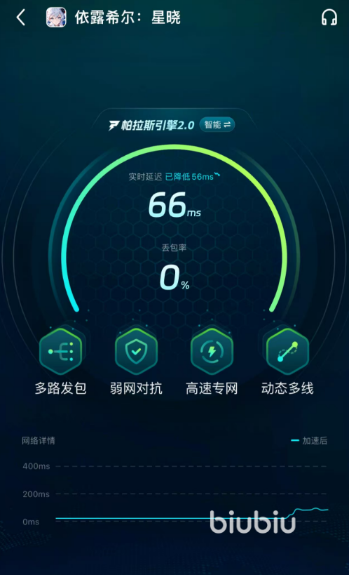 biubiu的智能引擎更有优势的地方是能够自动匹配出最佳加速通道,在网络有变动的时候可以快速无缝切换到更稳定的连接,保证游戏毫秒级别的响应速度,就算是在用移动数据或者信号稍微差一点的地方玩,也有特有的数据包实时补发技术,大幅度降低卡顿和掉帧的情况出现,让玩家随时都能享受到酣畅淋漓的团战指挥与高精准度的操作感受。
