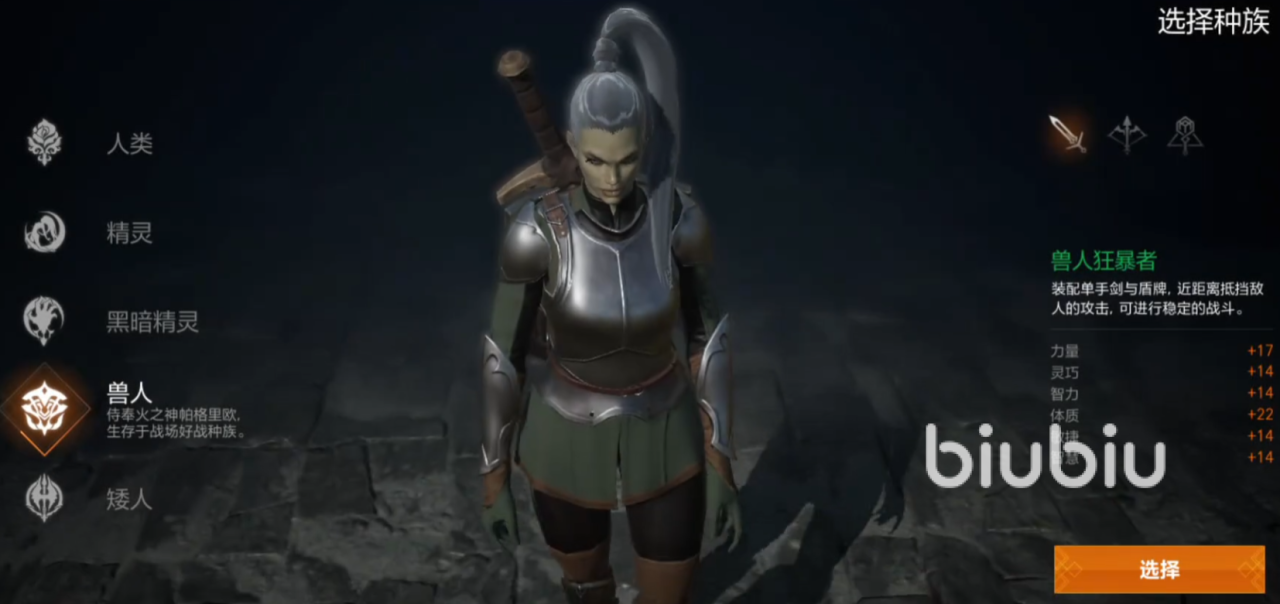 种族选择直接影响职业成长路径:精灵族提供高额基础防御加成,适配纯防御向坦克 build;人类族属性均衡,兼顾生存与输出弹性,适合多职能切换需求;兽人族则强化力量成长,提升物理爆发上限,更适合追求高伤害转化率的半坦半C路线。