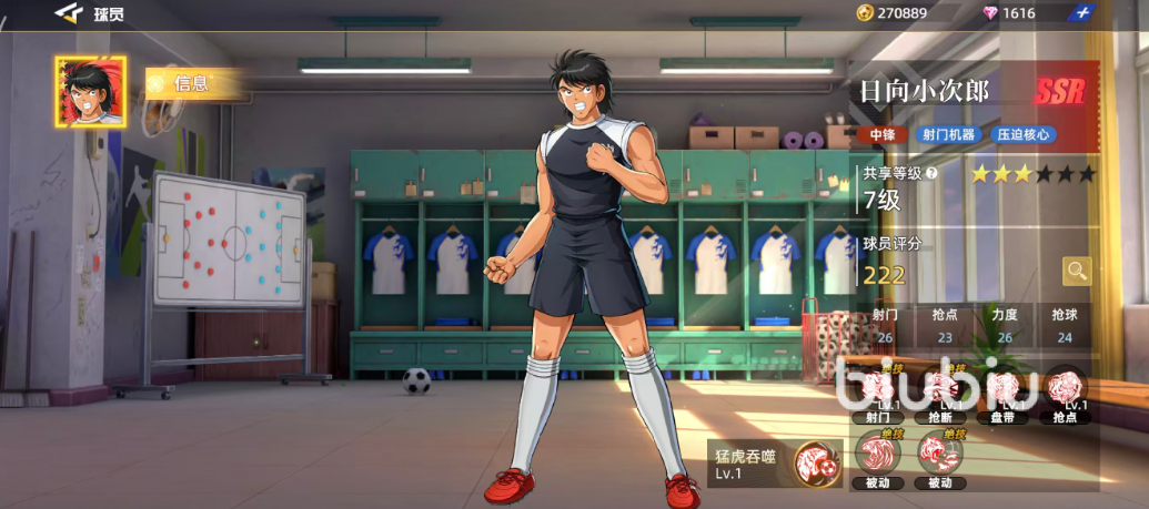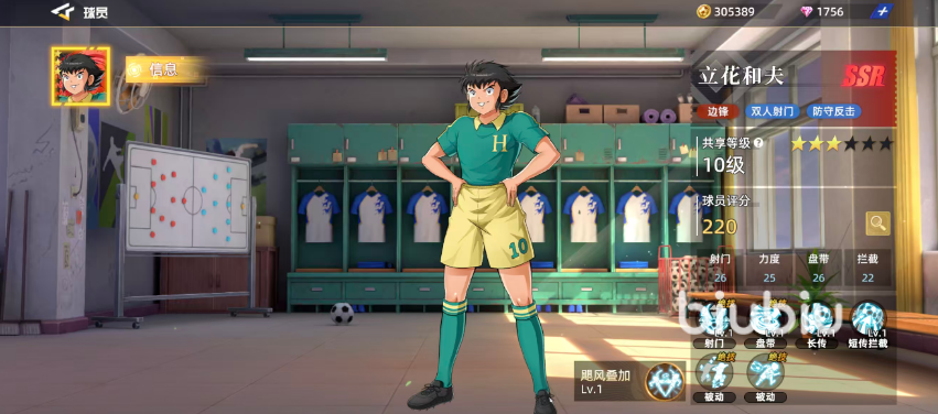 首位推荐的是立花和夫,他不仅可胜任前锋职责,也能作为边锋灵活使用。作为一张红卡球员,他的核心优势在于双人射门与防守反击机制。其整体评分表现出色,具备较强的持续输出能力。随着比赛推进,他能触发两个被动技能,尤其在未受抢断干扰的情况下,射门属性会获得显著提升,从而为队伍带来更高的进攻倍率加成。