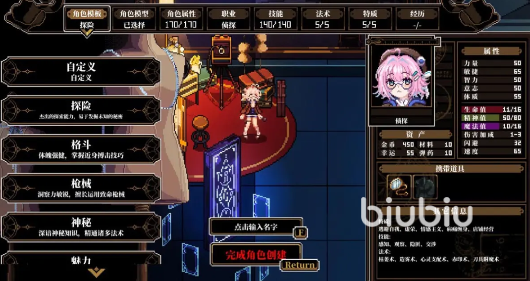 角色创建环节强调功能性与叙事适配性。关键属性包括观察、理智、知识、神秘学、说服等,每一项均对应特定剧情判定场景。当进入调查、谈判、解谜、对抗或逃脱等关键节点时,系统将触发掷骰机制,结合角色对应属性值进行成功率比对,从而决定行动成败。这种“选择+能力+随机性”三位一体的驱动方式,正是本作区别于常规视觉小说与动作RPG的核心特征。