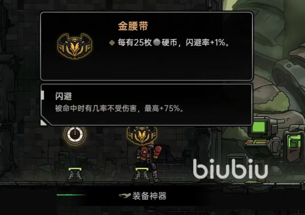 金腰带则聚焦生存维度,其效果与硬币收集量强绑定:每拾取25枚硬币,永久提升1%闪避率;且每次成功闪避后,有概率触发完全免伤效果,最高可叠加至75%免伤阈值。该特性使其成为刷钱流、逃课速通及高危位面挑战中不可替代的防御向神器。随着金币储备增长,角色容错率同步提升,在面对高爆发BOSS或精英怪时,大幅压缩非操作性减员风险。