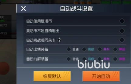 其中,“自动使用复活币”是一项关键设定。当角色在副本中阵亡时,系统将自动消耗背包中的复活币进行原地复活,持续至副本通关或复活币耗尽为止。此机制特别适合希望减少盯屏时间、专注其他事务的玩家,大幅降低手动干预频率。