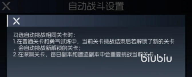 若勾选“复活币不足退出”,则在复活币全部用完且角色再次死亡时,系统将自动结束当前副本流程,无需玩家手动退出。此外,“自动挑战相同关卡”功能支持在深渊副本、每日副本及遗迹副本等指定场景中循环挑战;对于普通关卡与勇气试炼等常规内容,该模式同样适用,显著提升资源积累效率。