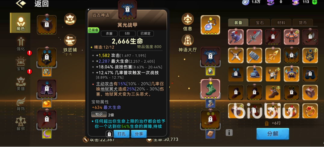 第二件重点推荐的是冥光战甲。该装备提供双维度强化:一方面提升角色生命、防御、暴击率等基础生存与输出参数;另一方面,其主动增伤效果可通过任意类型伤害触发,且实际加成数值由装备词条品质决定——词条等级越高,技能伤害提升幅度越显著。这一设计赋予冥光战甲极强的成长弹性,尤其适合技能循环密集、爆发需求突出的角色流派。