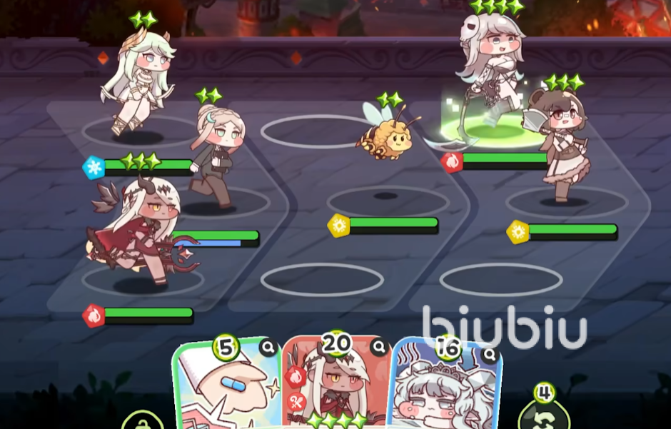 本作围绕“收集—战斗—互动”三大模块构建玩法框架。资源获取渠道多样,包括推进主线剧情、完成每日委托、参与限时活动等,可稳定获得招募券、金币、水晶叶等关键道具,用于角色抽取或兑换功能性材料。战斗采用回合制结合自走棋逻辑的设计:玩家仅需在战前完成阵型编排,设定前排、中排与后排角色站位;进入战斗后系统自动执行行动,大幅降低操作门槛。对于追求深度策略的玩家,亦可在高难度关卡中手动干预技能释放时机、动态调整站位与角色组合,考验战术理解与角色特性掌握程度。