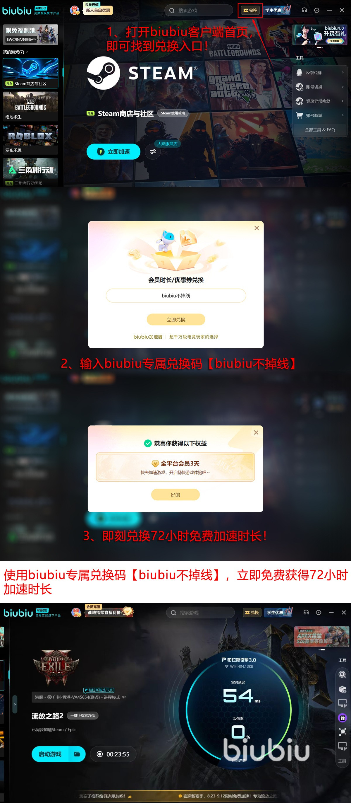 新冒险即将启程,专属加速福利怎能少?赶紧注册biubiu账号,新用户就有稳定护航24小时,输入【biubiu不掉线】专属隐藏密钥,还能得72小时尊享加速时长。新用户注册叠加口令,轻松实现累计96小时极限流畅加速白嫖。