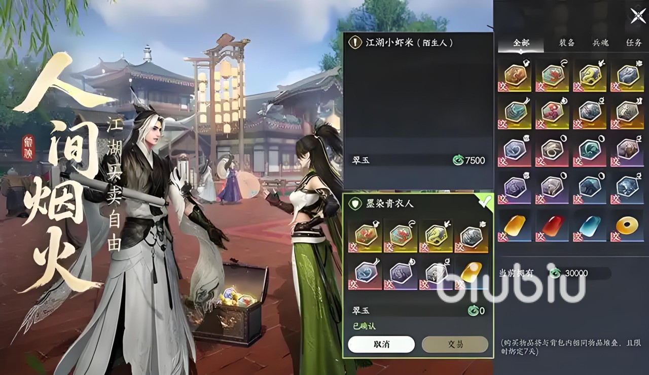 除面对面交易外,游戏还整合了双轨交易渠道:常规交易行与动态摆摊系统。交易行提供标准化检索与快速购入服务,适合追求效率的玩家;摆摊系统则支持议价、以物易物等灵活交互方式,更贴合真实江湖市井氛围。二者协同运作,共同支撑起层次清晰、响应及时、供需匹配度高的经济循环体系。