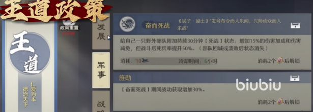 综上,《九牧之野》政策系统本质是战略定位工具——单人突进选霸道,强攻压制选王道,联盟赋能选衡道。掌握各流派技能机制与适用场景,结合实际战况动态调整,方能最大化发挥政策系统的策略价值。
