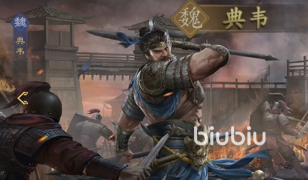 典韦主打高容错反伤与范围压制。“反击”技能在受普攻时有20%概率进行一次武力反击;若担任副将,战斗开始时可获得主将15%基础武力加成;“浴血”对前方扇形区域最多3名敌人造成武力伤害,并附加持续6秒的重伤效果,每秒造成武力伤害,形成持续压制与收割能力。