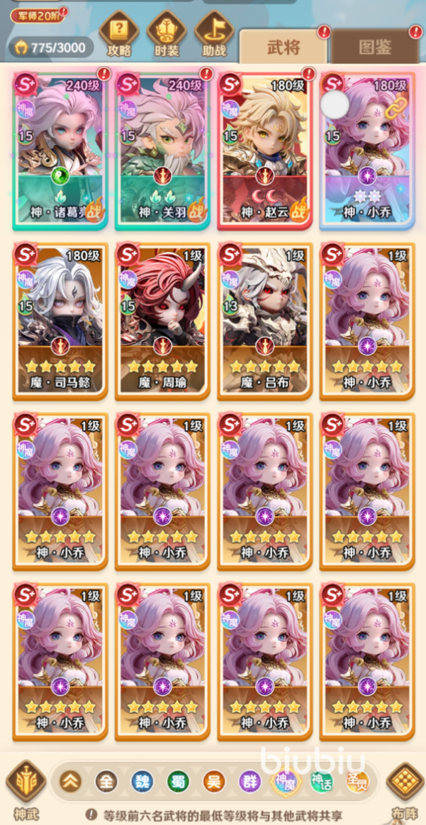 进阶阶段可尝试“神魔双核”体系,由关羽、吕布、诸葛亮、小乔、貂蝉、吕玲绮组成。其中魔化吕布拥有显著高于常规版本的爆发伤害,与关羽构成双收割核心;诸葛亮持续供给怒气,保障关键技能高频释放;小乔与貂蝉分别强化控制链强度与护盾覆盖率,大幅提升容错能力。该配置兼顾PVE压场与PVP反制,泛用性突出,适合应对多变战场环境。
