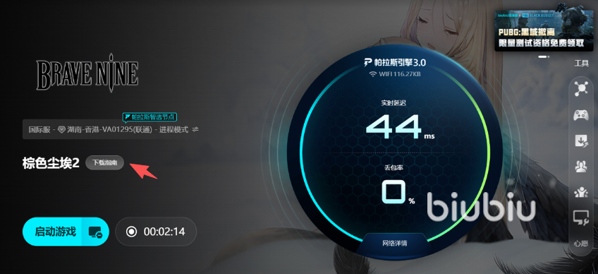 目前游戏因为一些原因,暂时不与Steam进行合作,这时习惯使用平台的小伙伴,就没办法正常得到它。棕色尘埃2是一款多线叙事,剧情丰富,对战极具策略性的游戏,还是很值得玩的,我们其实可以找到biubiu来帮忙解决问题。biubiu加速器不仅可以提供给大家好的服务,而且在加速页面中,棕色尘埃2这个名称旁就有下载指南图标,点击会提供相应的下载教程给大家的。