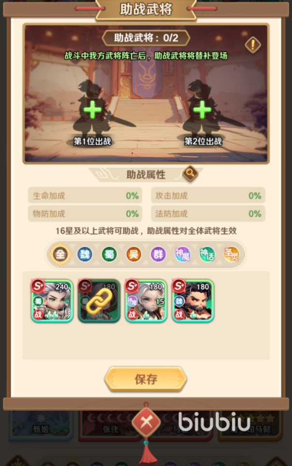 在《巨神军师》中,标准战斗采用5人主力阵容机制。当面对高难度副本、精英Boss或高强度竞技对抗时,仅靠主阵往往难以稳定破局。此时,助战系统便成为扭转战局的关键支点——该系统允许玩家额外部署两名助战武将,他们不占用常规站位,不参与普攻与技能循环,而是在战斗初始阶段依预设顺序瞬时入场,并立即释放唯一一次终极技能(即“助战技”),全程无需任何触发条件。