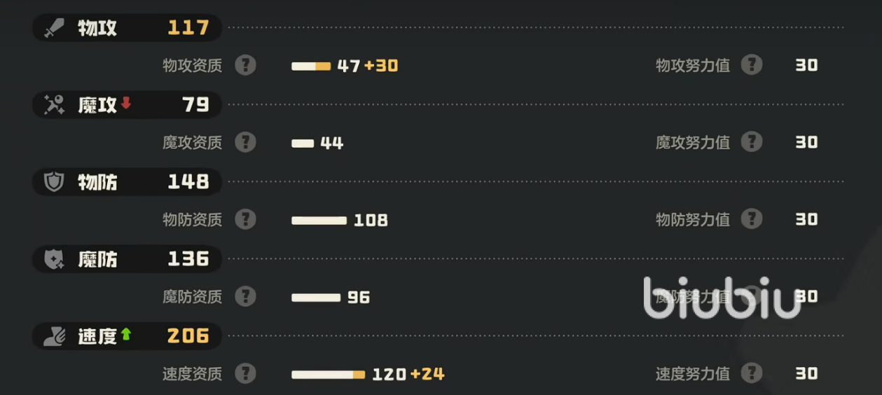 从种族值来看,咔咔鸟并非传统意义上的高攻击型宠,物理与魔法攻击基础值均属中等水平,但生存端表现突出:HP达150,物防108,魔抗96,整体耐久结构扎实;速度种族值优异,是保障先手权的核心支撑。若进行努力值分配,建议优先投入生命、物防与速度三项,兼顾承伤能力与出手顺序。满配后HP可提升至约374点,物防同步显著增强,大幅提升站场稳定性。
