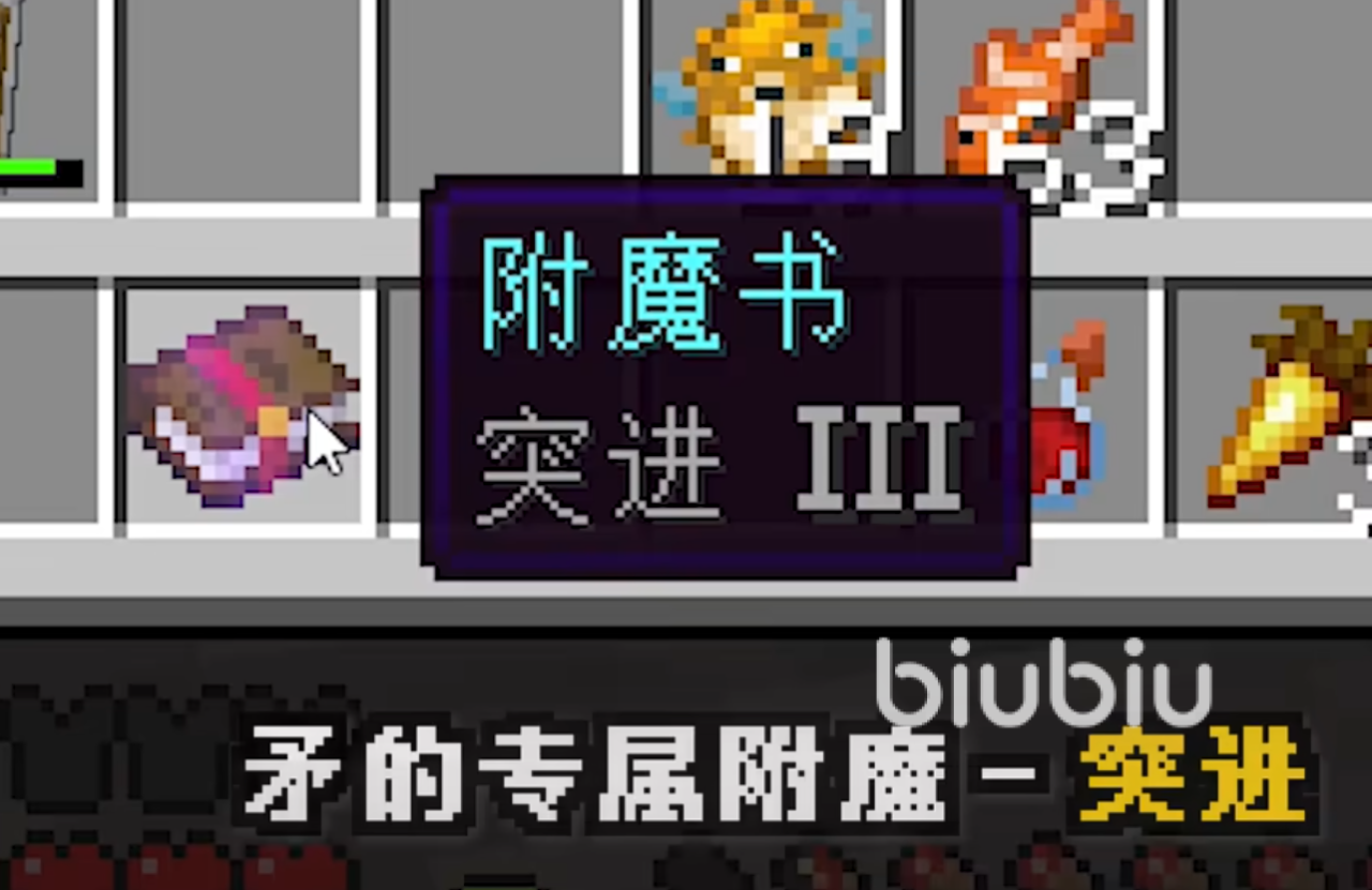 它有专属附魔书,就是突进,附魔后使用戳刺攻击会触发一次迅猛的短距离冲刺,快速逼近敌人,不同等级的区别是增加冲刺距离。