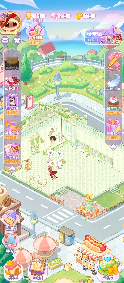 当前版本中,付费内容严格限定于三类非功能性加速项:第一类为装修系统。玩家可通过任务奖励、活动发放及代币抽奖获取家具与景观组件,但部分高人气单品抽取概率较低,且代币积累周期较长;此时可自愿选择直购特定家具包或参与限时家具特惠抽卡,同步提升店铺等级与区域影响力数值。