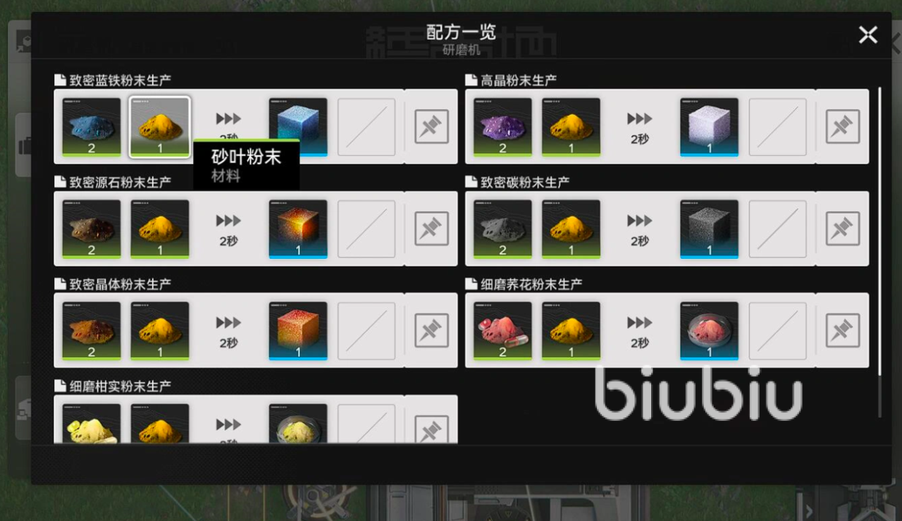 获取砂叶后不可直接用于合成或升级,必须经研磨机加工为砂叶粉末。加工比例为1:3,即1单位砂叶产出3单位粉末;单次加工耗时2秒。建议部署三台研磨机并联运行,并通过传送带统一供料。为保障持续高效产出,需确保传送带处于负载均衡状态;部分干员具备特殊技能,可提升研磨机工作效率10%至15%。