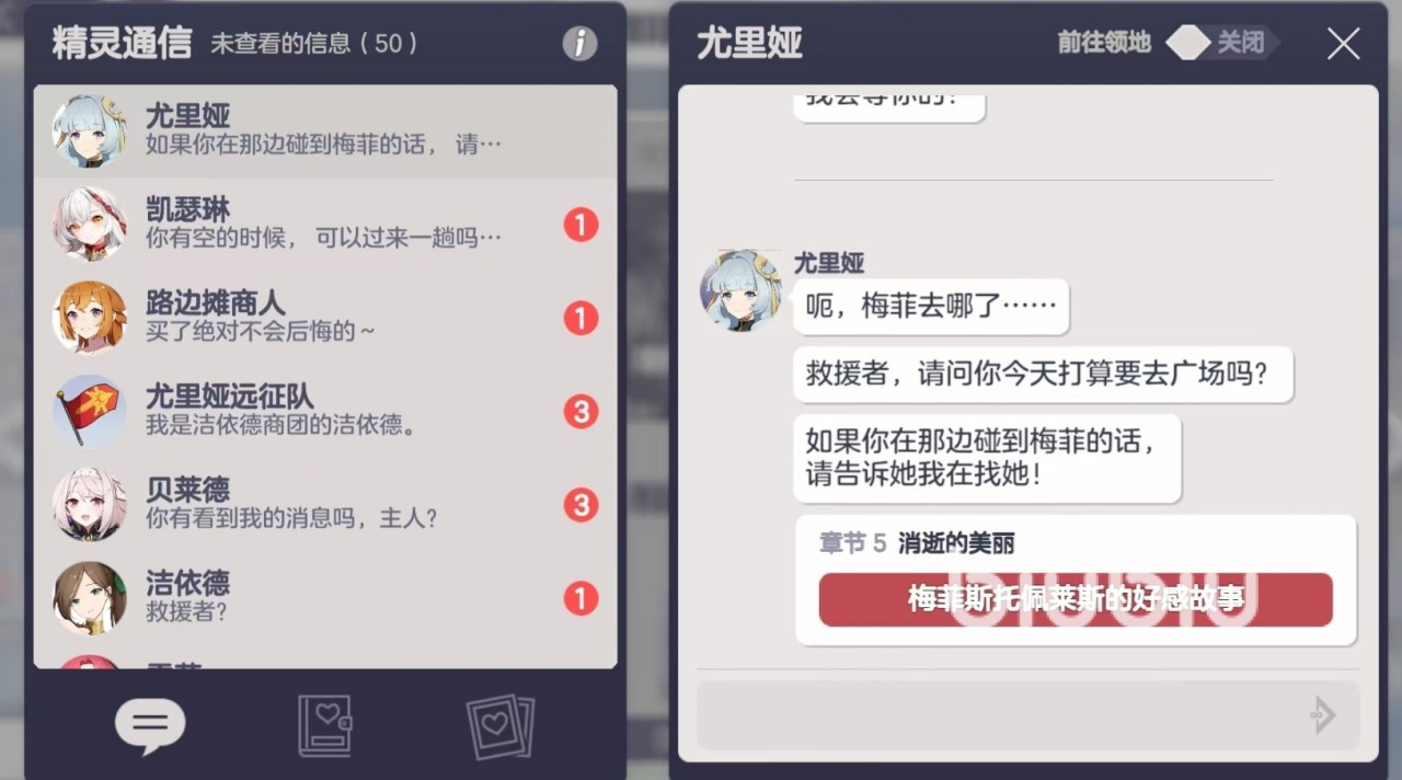 提升好感度需消耗特定道具,包括花束、食物类及纪念品类三种类型。所有道具均通过扭蛋获取:每次扭蛋必得花束,并随机附赠可赠送的其他道具。注意,精灵仅接受其偏好列表内的物品,不匹配的道具无法送出。扭蛋主要产出途径为领地玩法——派遣精灵执行打工任务,有概率获得扭蛋;部分限时活动任务也会发放少量扭蛋或直接好感道具,但产出效率远低于领地系统。