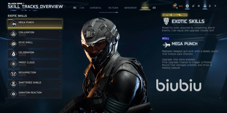 异域技能系统基于世界任务宝箱随机激活,共提供八种独特能力,例如超能拳击、毒蝶召唤、重生无敌等,每项技能均具备明确战术定位。赛季中期还将上线“幻影技能路线”,新增伏击判定强化、近战加速降噪等潜行向能力,进一步拓展隐蔽作战与机动突袭策略维度。