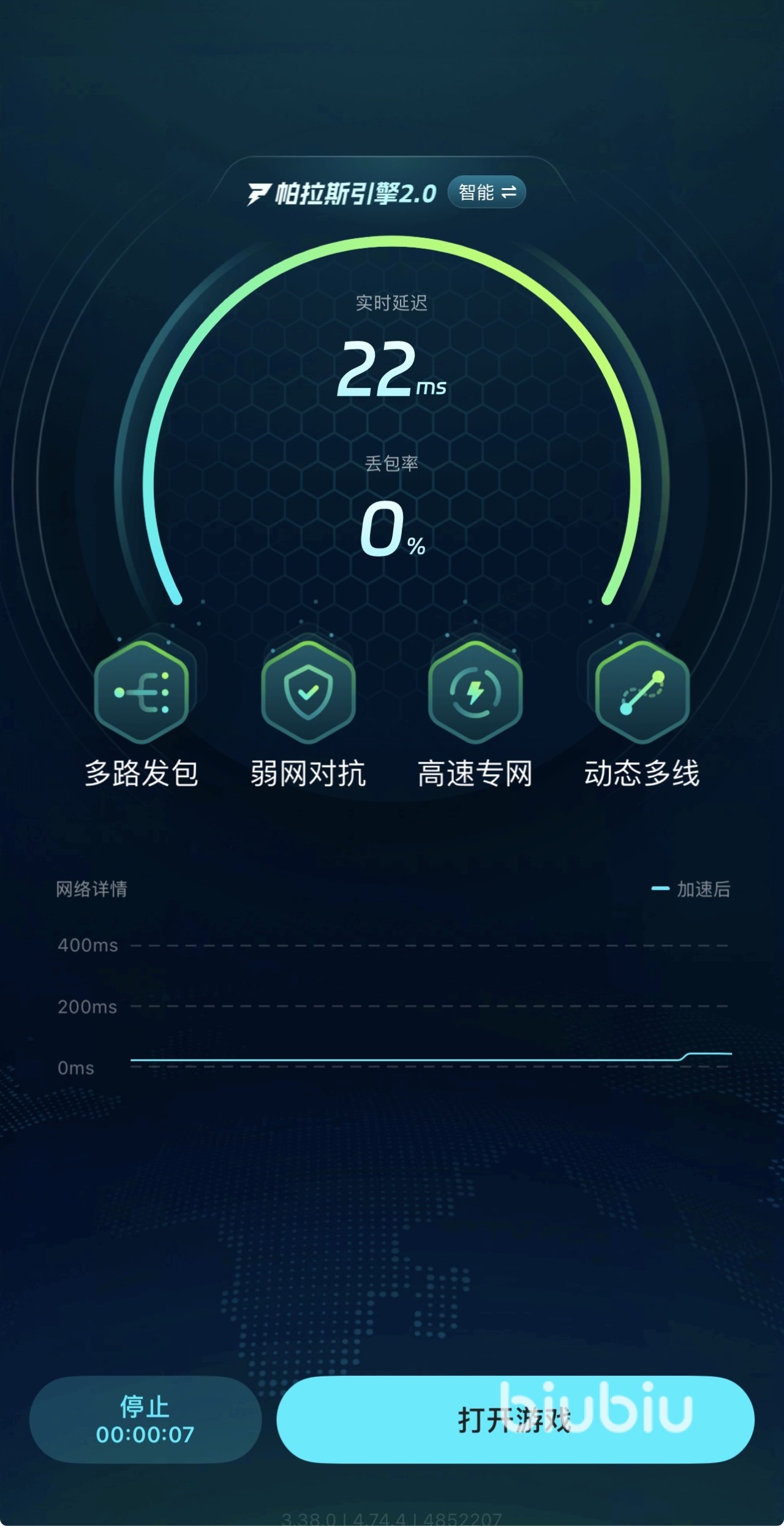 星际战甲手游作为次时代的机甲战斗手游,可以让玩家们沉浸在酣畅淋漓地枪战当中,一旦战斗途中掉包太夸张的话,那就很容易被对手给两下KO,所以更有重视这个问题。这里建议各位先检查一下当前的网络连接是否正常,例如有没有链接到信号不好的WiFi,或者换个信号好的地方试试。另外也有可能是手机内存不够,所以需要降低画质来让自己的性能恢复正常,从而导致掉包。这时也可以考虑将分辨率调低一点,同样可以继续畅玩。不过若是网络卡的话,就要进行优化了。这里可以用上biubiu,通过加速后,即可拒绝掉包,继续嗨玩不断!