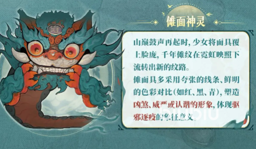 外观设计深度扎根于中式民俗美学:衣摆处盘绕麒麟与醒狮纹样,发饰融入山灵精怪意象,行进时清越铃音随步而起,既显少女般的轻盈跃动,又透出镇守一方的庄重气韵。红、黑、青三色以强烈对比铺陈于服饰之上,辅以夸张流畅的线条语言,塑造出诙谐而不失威仪的视觉张力。作为被世人误解的“面具妖”,他曾因异于常人的形貌遭非议,甚至被视作灾厄征兆;但始终以坚定意志逆流而上,最终化身为维系人间秩序的关键符咒,以铃声为信,以守护为誓。