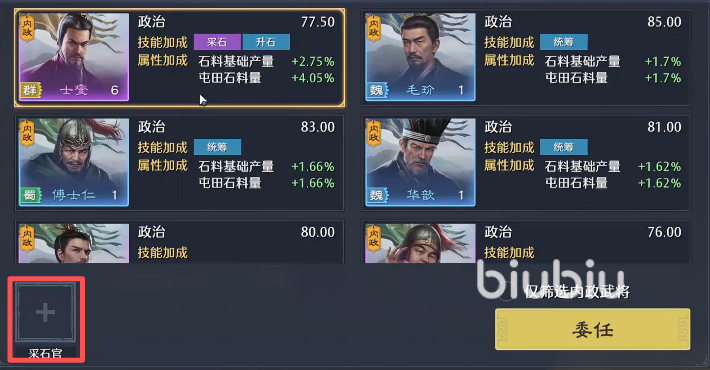 首推“动态内政调控法”:游戏中采石官作为关键内政官职,其技能等级直接影响单次屯田石料产量。以基础屯田量1928为例,当采石官政治属性技能全部点满后,单次产出可提升超1000点。操作要点在于——屯田前临时集中资源将采石官技能升至满级,完成采集后立即撤回所用升级材料,实现资源零损耗的阶段性增产。该技巧每次可额外获取4–5天等效产量,大幅缓解开荒期石料压力。