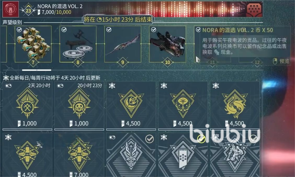 每日可领取一个基础任务,有效期为3天,单次完成后获得100点声望;每周四刷新周常任务,共包含5个普通周任务(每项4500声望)及2个精英周任务(每项14000声望)。所有周任务均支持重复完成,可通过固定地图刷怪方式稳定获取声望,用于提升电波等级并解锁对应奖励。