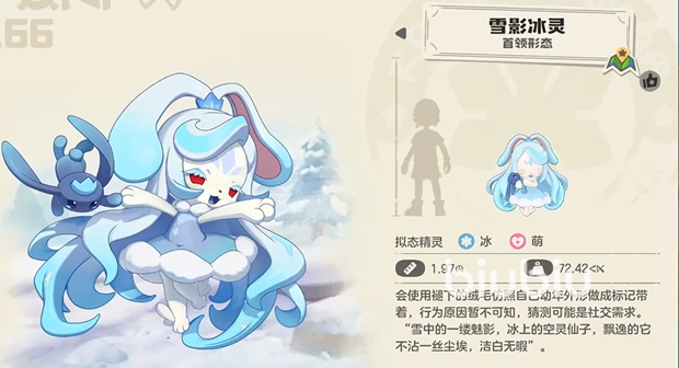 雪影娃娃为冰系宠物,由基础形态“大耳帽兜”进化而来。其进阶路径明确且无隐藏条件:当等级达到100级时,将自动进化为最终形态——雪影冰灵。该等级门槛虽高,但无需任何进化石、特殊道具或场景触发,全程依赖等级积累,操作门槛低,适合长期稳定培养。