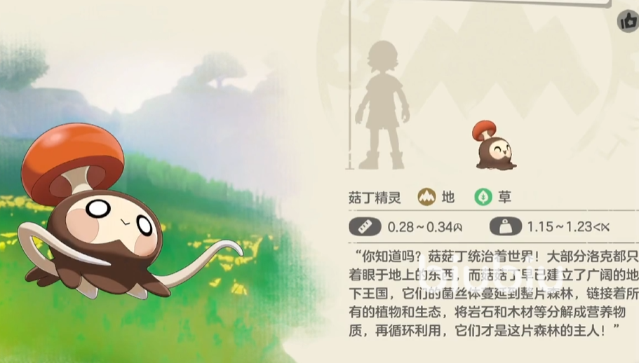 关于获取方式,菇菇丁可通过卡洛西亚大陆左侧山洞中的九幽菇分裂事件捕获。该场景中,九幽菇会周期性分裂出菇菇丁,玩家可直接进行捕捉。其外观设计兼具萌系风格与辨识度,实战中在雨天环境下表现尤为突出;此外,还可使用技能学习道具为其配置额外技能,进一步强化战术适配性。