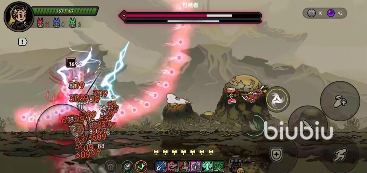 以伪装者BOSS为测试目标,该流派表现尤为突出:开局积攒锤类充能,格挡后立即释放手里剑启动飞羽,首波即可触发连环爆破;第一阶段结束前完成两轮完整循环;进入第二阶段后保持中距离站位,持续用飞羽压制;当能量达到阈值时,主动施放雷击技能,精准触发飞羽二次引爆,随后产生分裂效果,伤害呈指数级增长,大幅提升阶段通关效率。