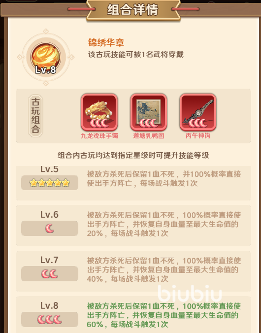 需特别注意:古玩组合的技能等级严格取决于套装内三件古玩的最低星级。若仅提升其中一件的星级,其余两件未同步跟进,则组合技能等级无法提升,效果维持原状。因此,资源投入务必保持三件同步升星。古玩获取主要依赖游戏内限时活动“稀世佳藏”与“珍奇异品”,参与活动并累计达成指定充值额度,即可获得对应宝箱钥匙用于抽取古玩。