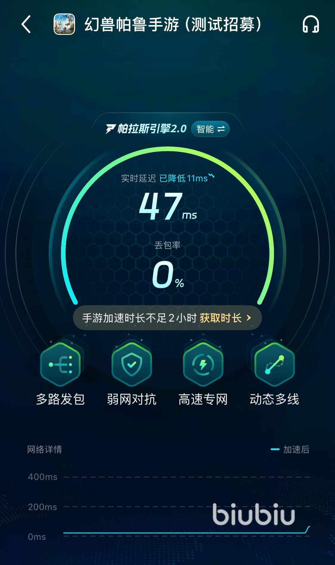 当前biubiu加速器服务表现稳定,启动后可快速识别并优化游戏链路,显著降低延迟与丢包率。新用户注册即赠3天无广告加速权益;后续可通过观看广告兑换额外加速时长,确保长时间在线孵化、配对、培育等核心环节始终处于低延迟环境,有效提升帕鲁育成成功率与体验流畅度。