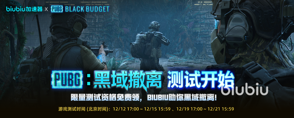 目前,《PUBG Black Budget》正处于技术验证测试阶段,测试资格已同步上线 biubiu 加速器专属入口。用户可通过参与平台内限时抽奖活动,赢取稀缺测试资格。需注意的是,当前版本仍存在服务器压力波动与跨区域连接延迟现象,官方明确建议全程启用网络优化工具以保障联机稳定性。